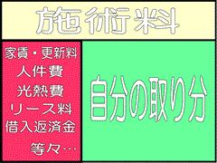 …物販店等と違い、時間当たりの収入は、決まってしまいます。ですから、家賃が高い程、料金を高くするか、人数をこなさなければなりません。