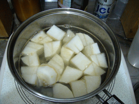 大根の煮物は、分厚くなければ、美味しくないですねぇ。でも、厚くすると、火の通りが悪い。。