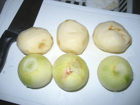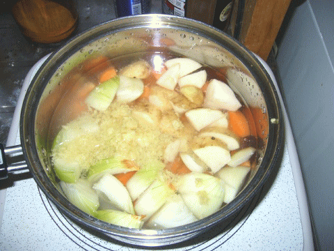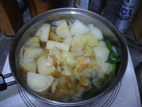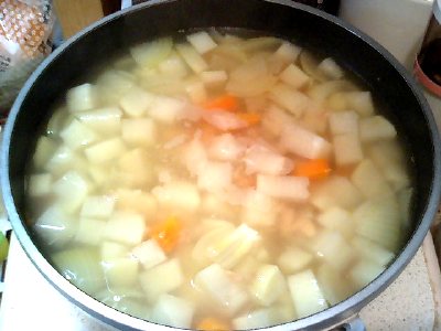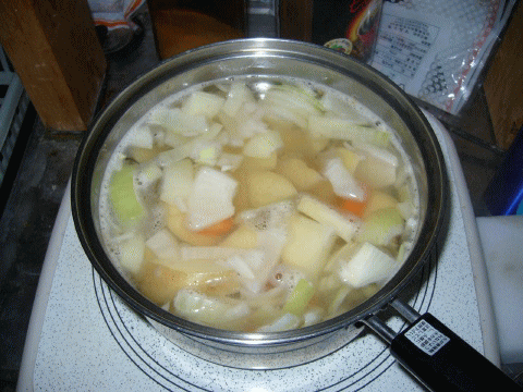 ジャガイモ・人参・タマネギをコンソメで煮て。。