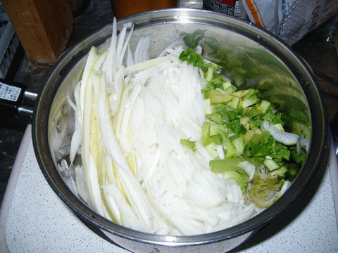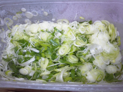 身体を温める野菜の定番…長ネギ。そのままだと、場所を取るので、買ったら、即輪切り。