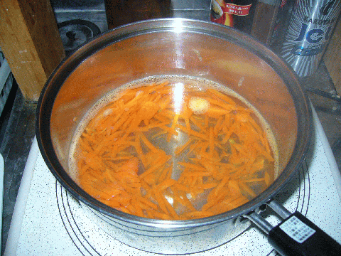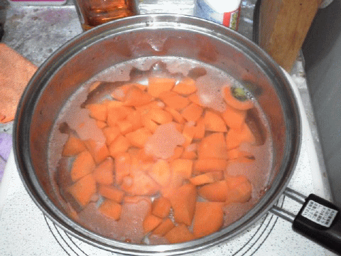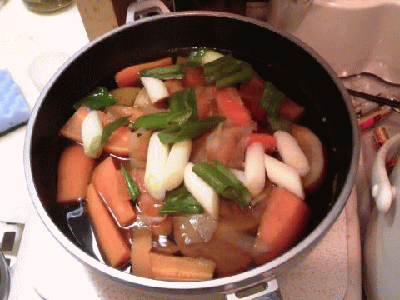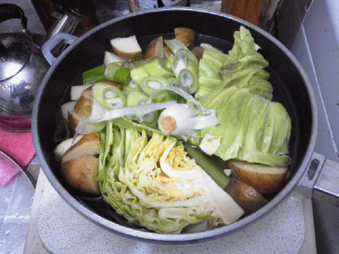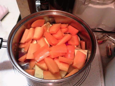 ※土の上の野菜は、お湯から。土の下の野菜は、水から煮る。。と言われますが、そんな面倒なことは致しません。。(^o^;)