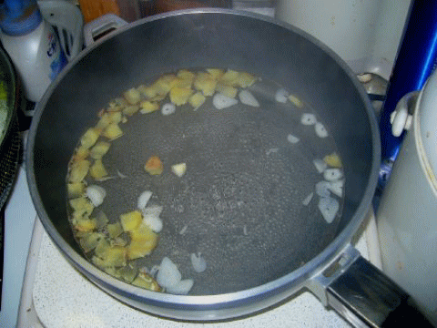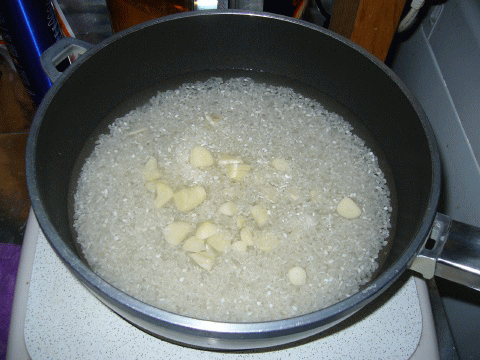 ごま油をひいたフライパンで、焦げ目をつけて。。(ついでに、スライスニンニクも)
