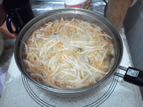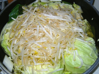 日光の業者が作ったモヤシを入れて。。※原料の豆は、中国産(>_<)