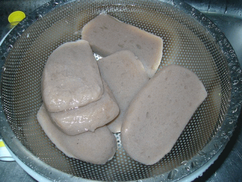 と言うわけで、真ん中に隠し包丁を入れています。これで、火の通りと、味のしみこみが早い♪(^o^)v