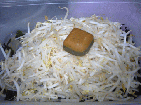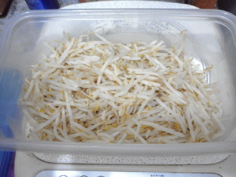 袋に入ったままのモヤシを、揉み砕き、水洗いして、レンジでチン…