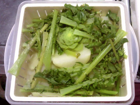 葉は、水洗いして、味噌汁の具に。。