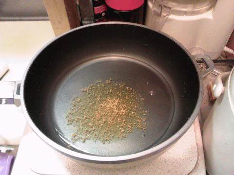 火が通ったら、生オカラ・塩・醤油・ゴマ・大量の一味唐辛子を投入…