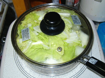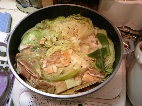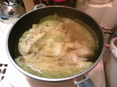 その間に、シャワーを浴びれば、キャベツとろとろのクリームシチューもどきに…