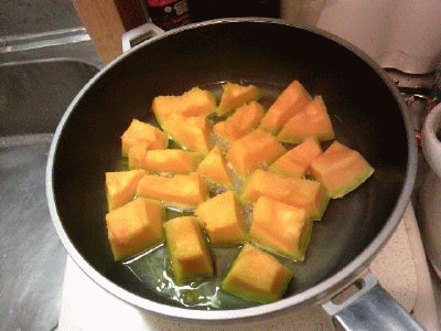 7mm厚程に切って、サラダオイルで、10分蒸し焼き…