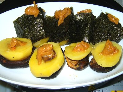 このサツマイモは、美味しいね…って、これジャガイモですよね?? 食感も味も、鳴門金時に似てます。醤油で、甘さが引き立ちます。