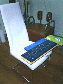 そこで、オフィスでは、キーボードを、イスに付けています。