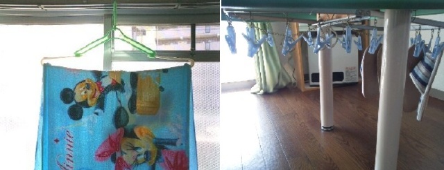 そこで、起きたら、金属製のハンガーを使い、毛布や掛け布団を、掛けてしまいましょう♪ これで、寝具は乾燥し、夜寝る頃には、フカフカに回復…(^o^)v
