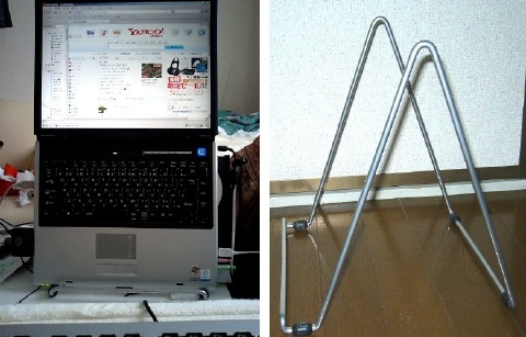 そこで、ノートパソコンをデスクトップ化してしまいましょう♪ 用意する物は、ワイヤーイーゼル(額やポスターを立てかける台) USBキーボード&マウス 全部で、2,000円以内で揃えられます。