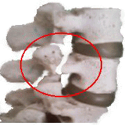 背骨の本体(椎体)と枝(椎弓)が、分離してしまった状態です。更に進むと、椎体がズレていきます(すべり症)。