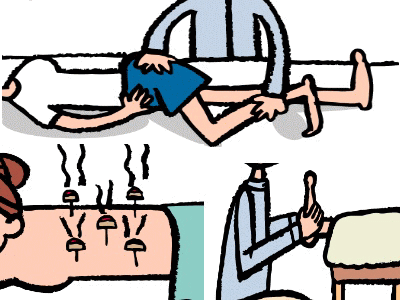 一般的に行われている、膝への電気・温熱療法、マッサージ、テーピング、湿布、注射等では、根本的な解決にはなりません。