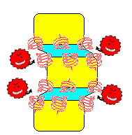 しかし、背骨は、単に、積み上げられているのではなく、椎間板(水色の部分)という軟骨と、靱帯(赤色の部分)で、繋がれています。