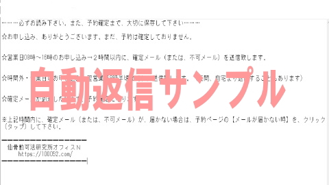 お申し込み時のメールアドレス等は、施術完了後に消去し、保存しておりません。