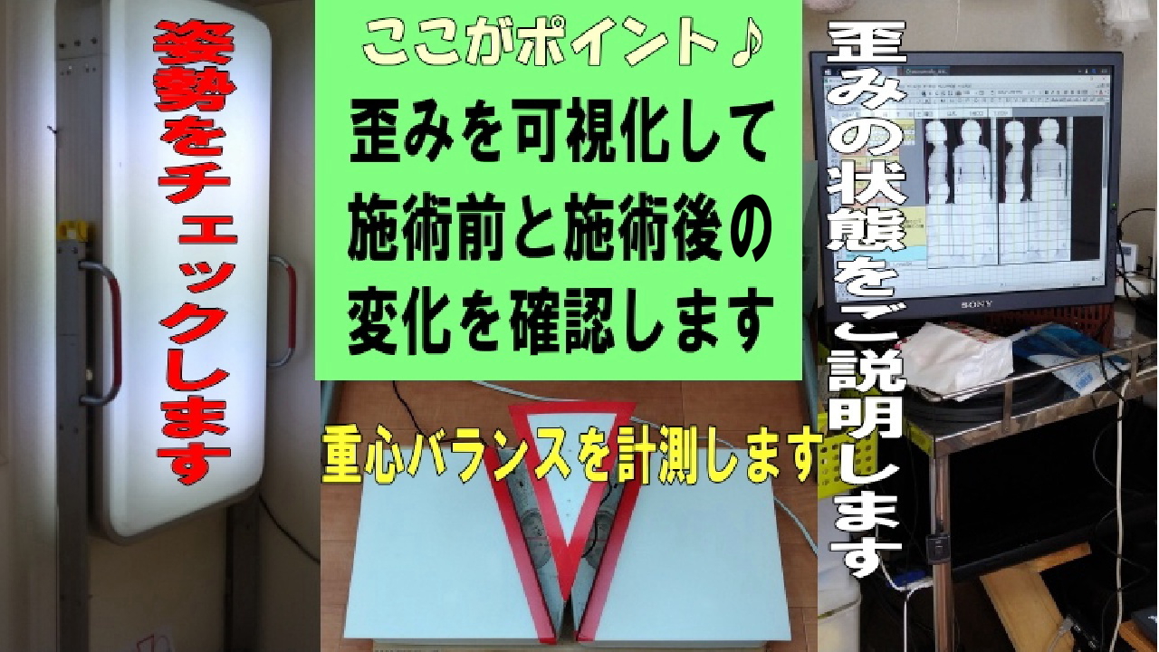 仙骨が連動し、姿勢が変化した時点で施術を終えます。そして、お体の変化を、画像で確認して頂きます。ここが、他の施設との決定的な違いです。